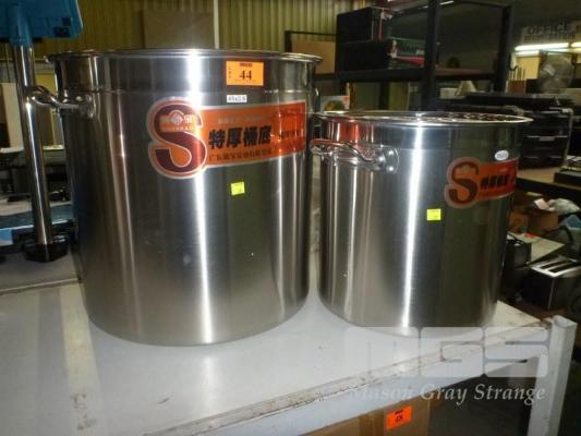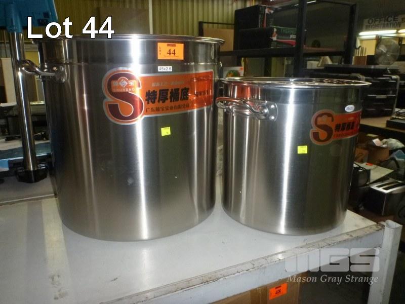 2 x STAINLESS STEEL STOCK POTS, 35 & 45cm