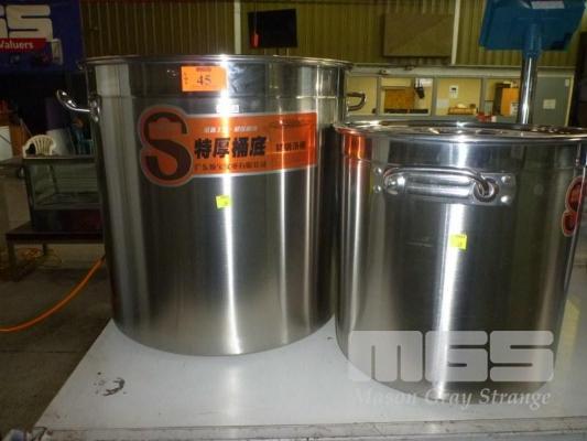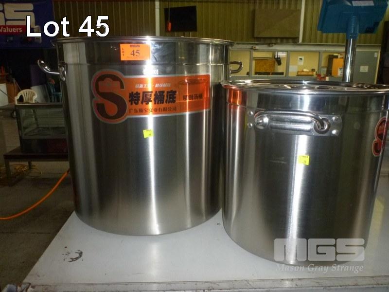 2 x STAINLESS STEEL STOCK POTS, 35 & 45cm