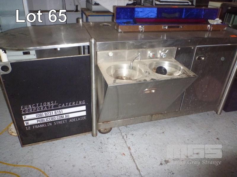 MOBILE COFFEE KART, 150 x 70cm STAINLESS STEEL CASED WITH INTEGRATED BAR FRIDGE, DOUBLE SINK, WATER HEATER & POWER