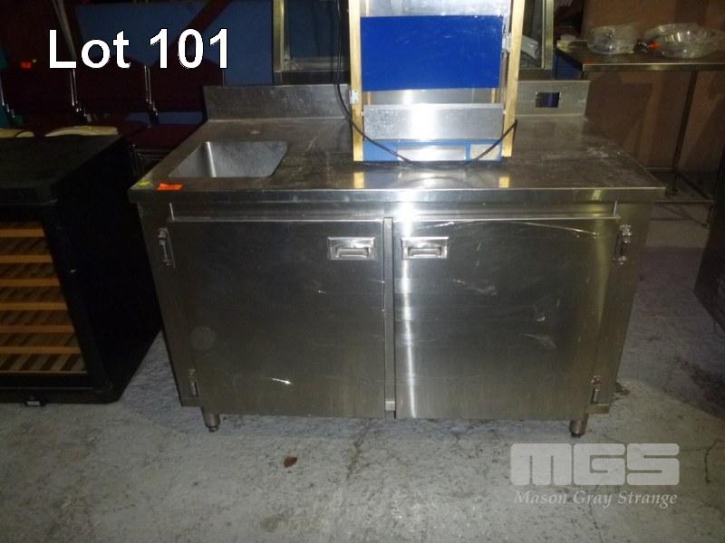 STAINLESS STEEL 2 DOOR CUPBOARD, 135 x 75cm WITH SINK & CUPBOARD