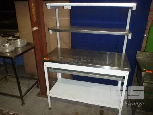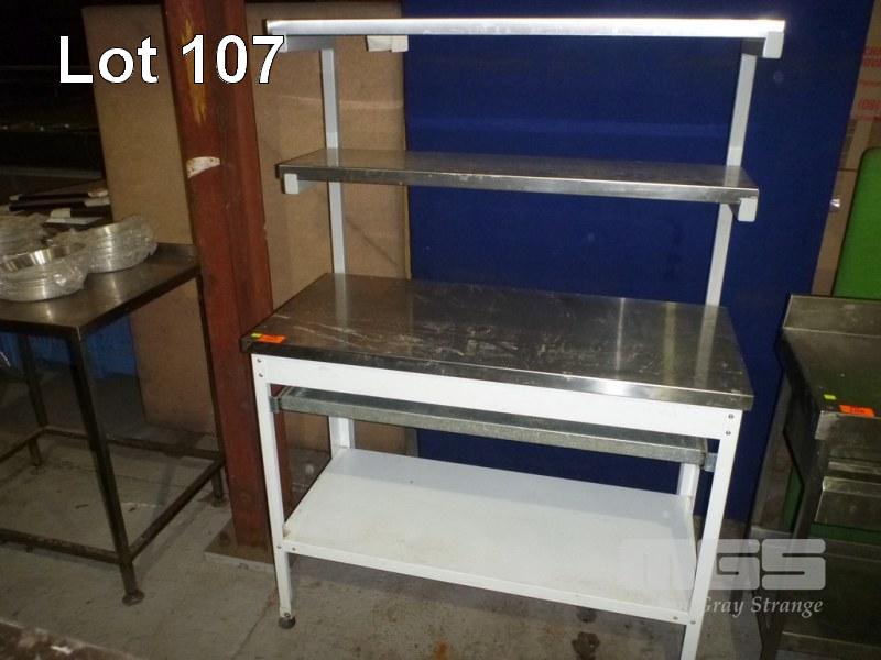 STAINLESS STEEL TOP BENCH, 115 x 53cm WITH DRAWER & 2 TIER SHELF