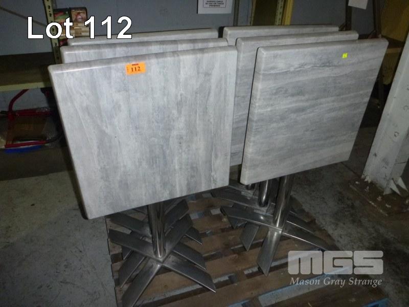 6 x FOLD DOWN CAFE TABLES, 60 x 60cm, MOULDED TOP