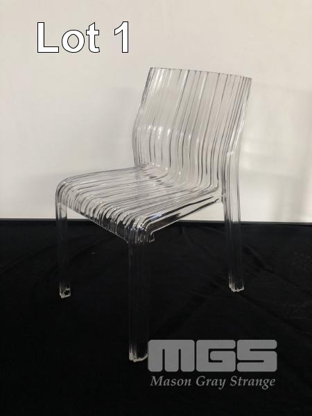 2 x KARTELL "FRILLY" CHAIRS MODEL: 5880 COLOUR: CRYSTAL RRP: $460 EACH (AS NEW IN BOX) NOTE: LOCATED AT MGS 370 TORRENS ROAD KILKENNY