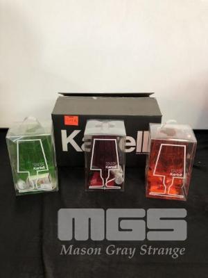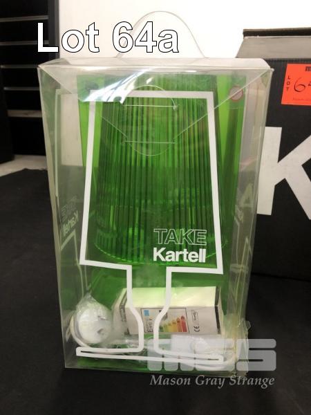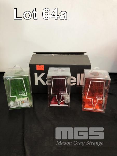 4 x KARTELL "TAKE"" LED DESIGNER LAMPS, 28 w LED COLOUR: RED (AS NEW IN BOX) 1 x KARTELL "TAKE"" LED DESIGNER LAMPS, 28 w LED COLOUR: GREEN 1 x KARTELL "TAKE"" LED DESIGNER LAMPS, 28 w LED COLOUR: ORANGE LOCATED AT MGS 370 TORRENS ROAD KILKENNY