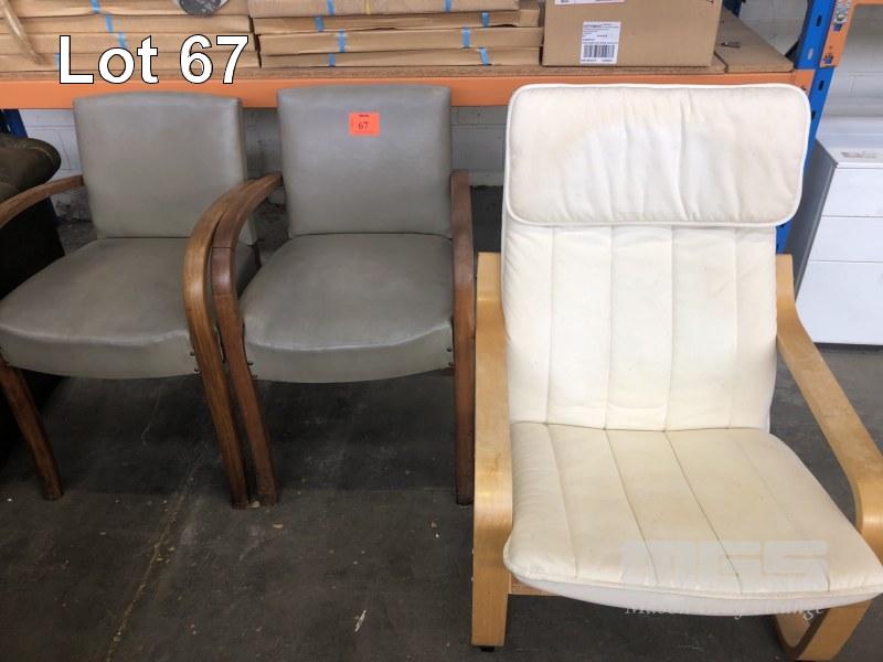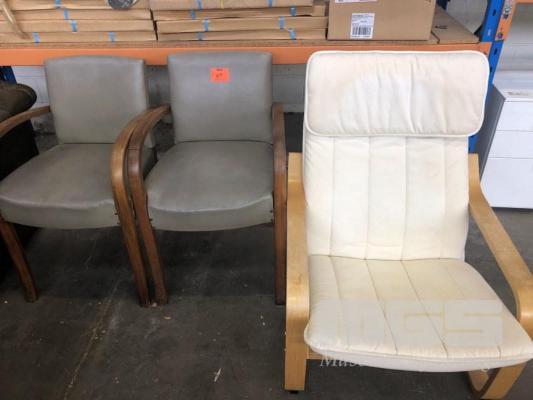 2 x ART DECO TIMBER FRAME CHAIRS, GREY VINYL 1 x TIMBER FRAME CHAIR, WHITE CLOTH LOCATED AT ARTEMIDE 28 FULLARTON ROAD NORWOOD