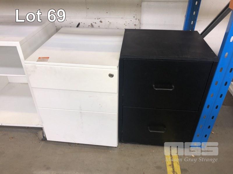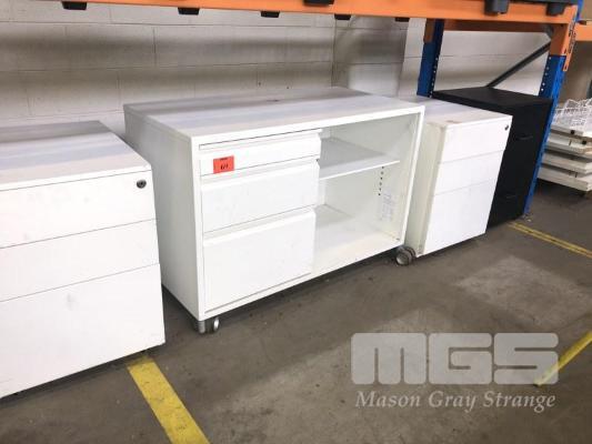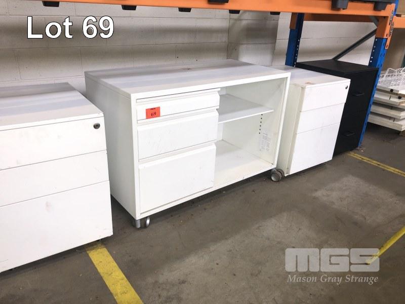 2 x WHITE METAL UNDER DESK MOBILES WITH MOBILE METAL 3 DRAWER CABINET
