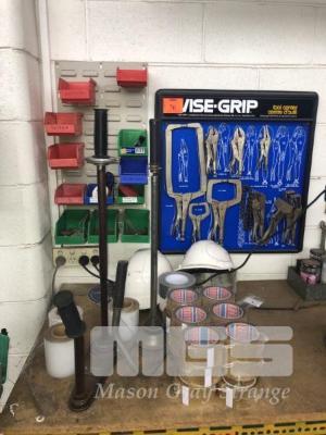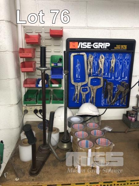 VISE-GRIP TOOL CENTER (INCOMPLETE) WITH WALL MOUNT TRAY RACK, ASSORTED TAPES, DRILL BITS, HARD HATS LOCATED AT ARTEMITE 28 FULLARTON ROAD NORWOOD