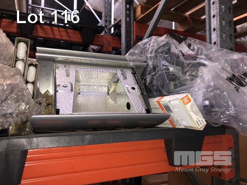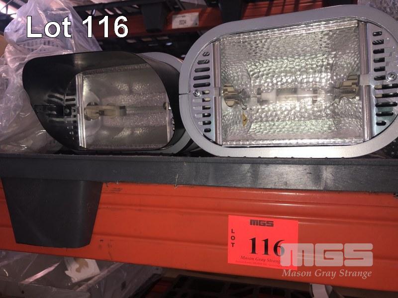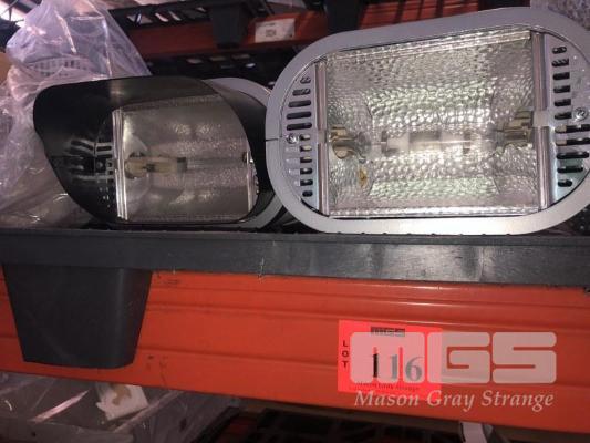 CONTENTS OF TOP SHELF, 11 x ASSORTED HALOGEN AND METAL HALIDE FLOOD LIGHTS