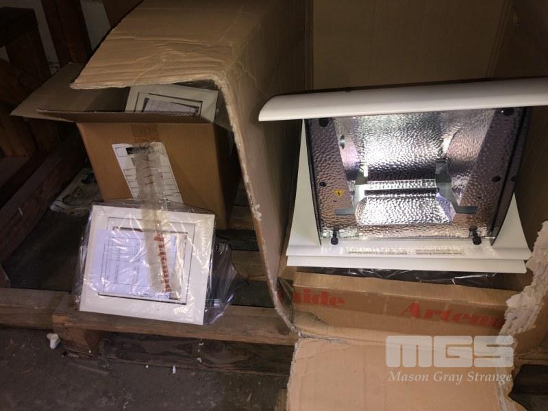 1 x FLURO BOX LIGHT, 3 x ASSORTED HALOGEN FLOOD LIGHTS