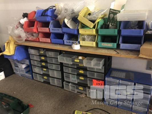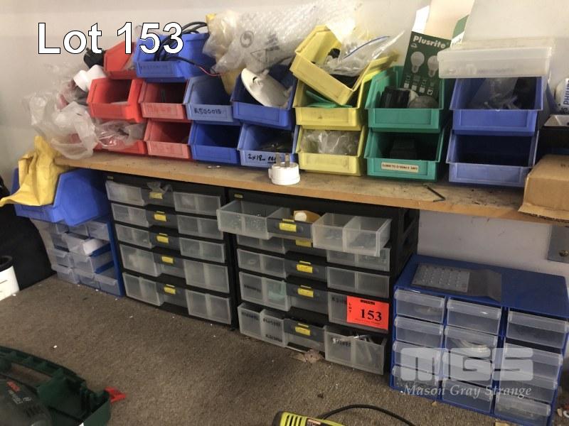 4 x PARTS DRAW UNITS AND CONTENTS OF ASSORTED ELECTRICAL PARTS, FASTENERS, FUSES, SPRINGS ect. WITH 26 x PARTS DRAWERS AND CONTENTS LOCATED AT ARTEMIDE 28 FULLARTON ROAD NORWOOD