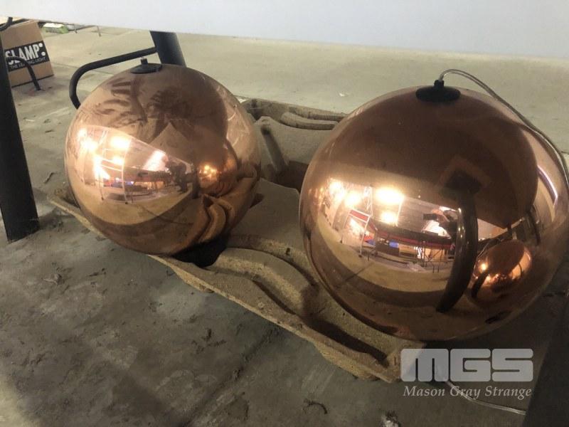 5 x TOM DIXON GLASS SUSPENSION LIGHT, 380 & 330mm DIAMETER, COPPER GLASS FINISH LOCATED AT ARTEMIDE 28 FULLARTON ROAD NORWOOD