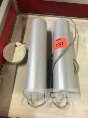 2 x SUSPENSION TUBE LIGHTS, POLY & METALLIC, SILVER FINISH, LED, 330 x 80mm DIAMETER LOCATED AT ARTEMIDE 28 FULLARTON ROAD NORWOOD