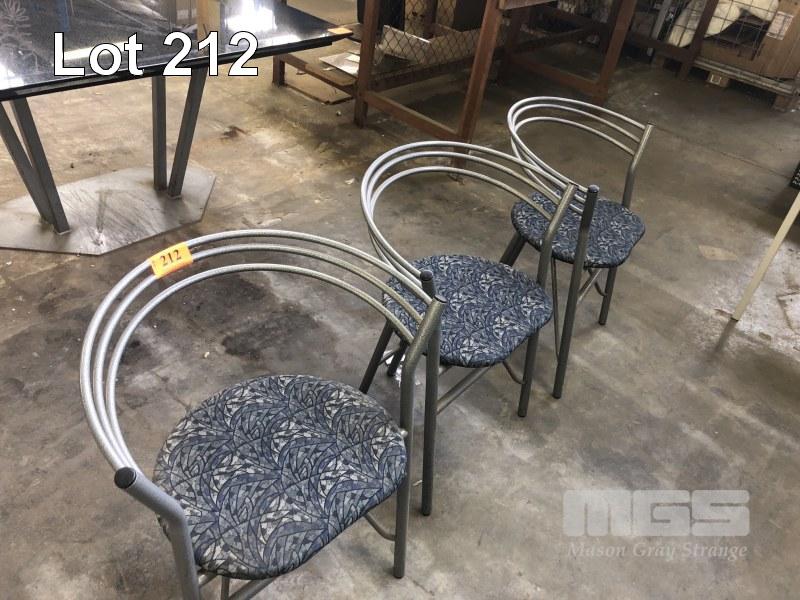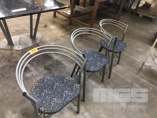 3 x MATCHING VISITORS CHAIRS, DECORATIVE, GUN METAL GREY FRAMES & BLU/ BLACK CLOTH SEATS LOCATED AT ARTEMIDE 28 FULLARTON ROAD NORWOOD