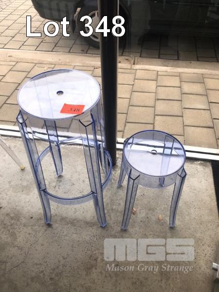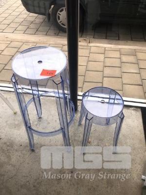 KARTELL, "CHARLES GHOST" HIGH STOOL COLOUR: CRYSTAL RRP:$455 KARTELL, "CHARLES GHOST" LOW STOOL COLOUR: CRYSTAL RRP:$265 LOCATED AT ARTEMIDE 28 FULLARTON ROAD NORWOOD