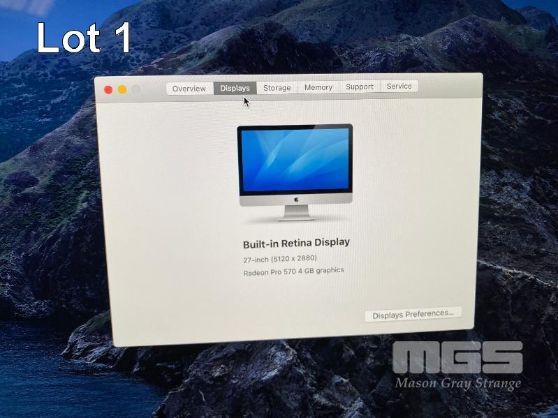 APPLE iMAC (A1419), CORE i5 7500 (7TH GEN) @ 3.4GHz, 8GB DDR4 RAM, 1TB FUSION DRIVE, BUILT-IN 27" RETINA 5K DISPLAY (5120x2880), 4GB AMD RADEON PRO 570 VIDEO, Wi-Fi, MAC OS 10.15 INSTALLED, CORDLESS KEYBOARD & MOUSE S/N:C02WG2V7J1GG