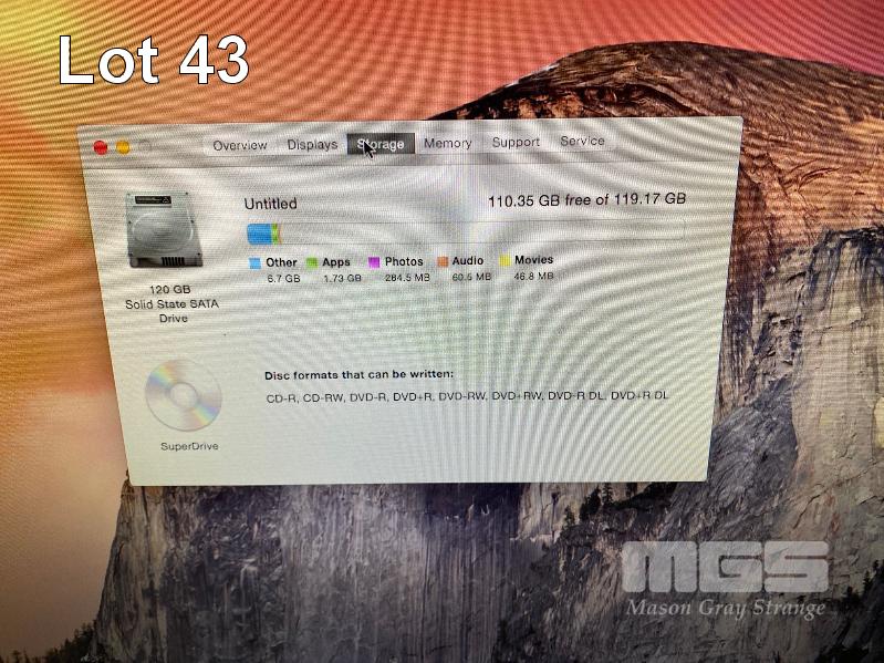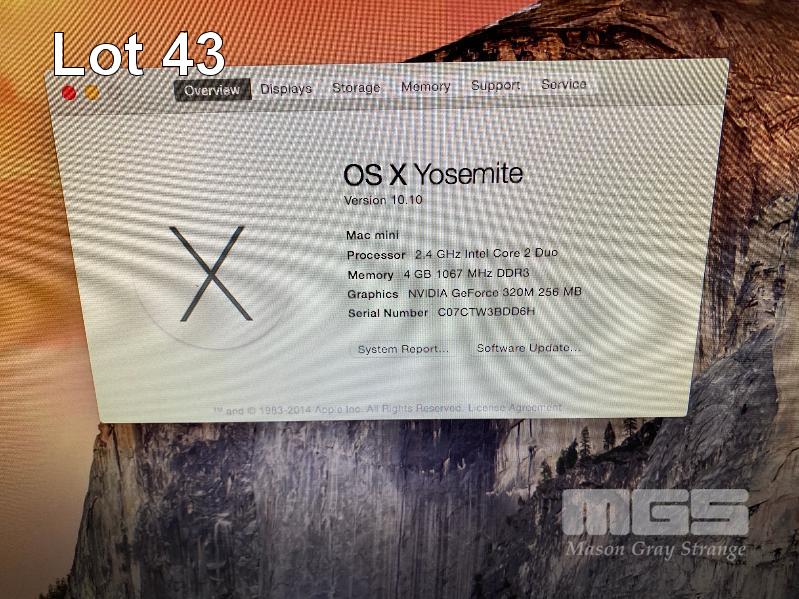 APPLE MAC MINI (A1347), CORE 2 DUO P8600 @ 2.4GHz, 4GB DDR3 RAM, 120GB SSD, DVD-RW, 256MB NVIDIA GEFORCE 320M VIDEO, Wi-Fi, MAC OS 10.10 INSTALLED (NO KEYBOARD, NO MOUSE) S/N:C07CTW3BDD6H