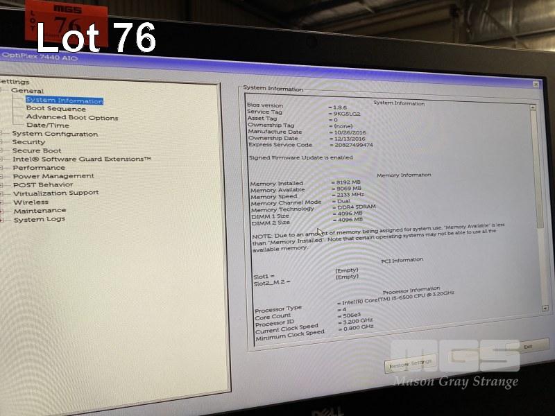 ALL-IN-ONE PC, DELL OPTIPLEX 7440, CORE i5 6500 (6TH GEN) @ 3.2GHz, 8GB DDR4 RAM, 256GB SSD, DVD-RW, INBUILT 23.8" FHD WIDESCREEN (1920x1080), INTEL HD VIDEO, WEBCAM, 8 x USB, WINDOWS 10 HOME INSTALLED, KEYBOARD & MOUSE S/N:9KG5LG2