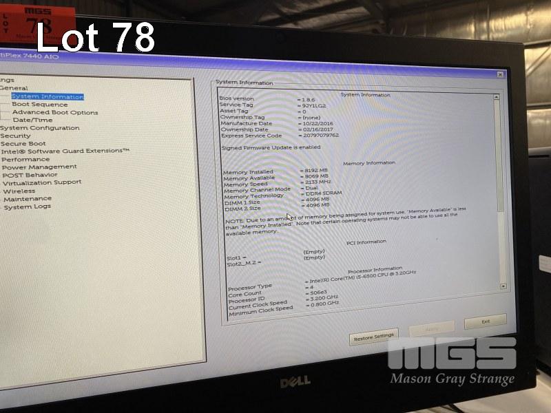 ALL-IN-ONE PC, DELL OPTIPLEX 7440, CORE i5 6500 (6TH GEN) @ 3.2GHz, 8GB DDR4 RAM, 256GB SSD, DVD-RW, INBUILT 23.8" FHD WIDESCREEN (1920x1080), INTEL HD VIDEO, WEBCAM, 8 x USB, WINDOWS 10 HOME INSTALLED, KEYBOARD & MOUSE S/N:9JY1LG2