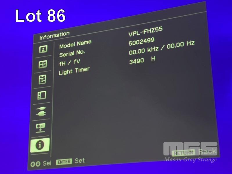 LASER PROJECTOR, SONY VPL-FHZ55 WUXGA 3LCD, 4,000 LUMENS, HDMI INPUT, 3,490 HOURS SHOWING (LAMP LIFE 20,000 HOURS) WITH REMOTE S/N:5002499