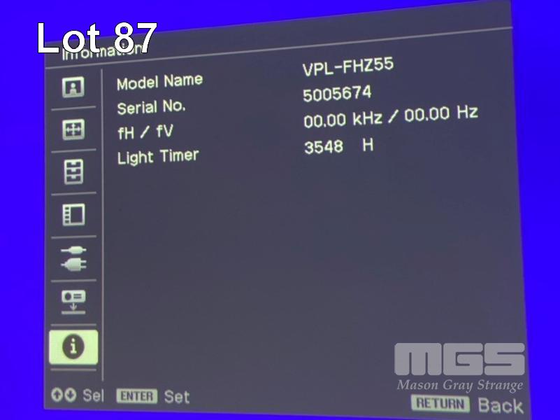 LASER PROJECTOR, SONY VPL-FHZ55 WUXGA 3LCD, 4,000 LUMENS, HDMI INPUT, 3,548 HOURS SHOWING (LAMP LIFE 20,000 HOURS) WITH REMOTE S/N:5005674