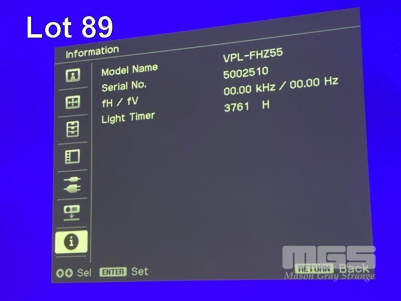 LASER PROJECTOR, SONY VPL-FHZ55 WUXGA 3LCD, 4,000 LUMENS, HDMI INPUT, 3,761 HOURS SHOWING (LAMP LIFE 20,000 HOURS) WITH REMOTE S/N:5002510