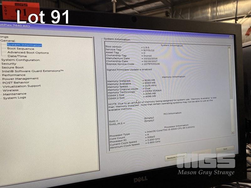 ALL-IN-ONE PC, DELL OPTIPLEX 7440, CORE i5 6500 (6TH GEN) @ 3.2GHz, 8GB DDR4 RAM, 256GB SSD, DVD-RW, INBUILT 23.8" FHD WIDESCREEN (1920x1080), INTEL HD VIDEO, WEBCAM, 8 x USB, WINDOWS 10 HOME INSTALLED, KEYBOARD & MOUSE S/N:9JY0LG2