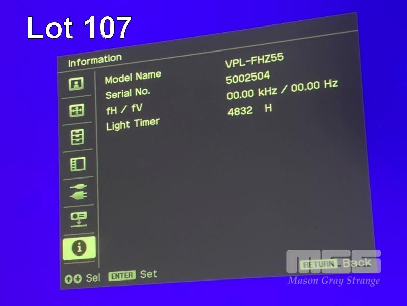 LASER PROJECTOR, SONY VPL-FHZ55 WUXGA 3LCD, 4,000 LUMENS, HDMI INPUT, 4,832 HOURS SHOWING (LAMP LIFE 20,000 HOURS) WITH REMOTE S/N:5002504