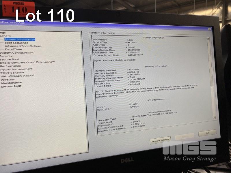 ALL-IN-ONE PC, DELL OPTIPLEX 7440, CORE i5 6500 (6TH GEN) @ 3.2GHz, 8GB DDR4 RAM, 256GB SSD, DVD-RW, INBUILT 23.8" FHD WIDESCREEN (1920x1080), INTEL HD VIDEO, WEBCAM, 8 x USB, WINDOWS 10 HOME INSTALLED, KEYBOARD & MOUSE S/N:9K74LG2