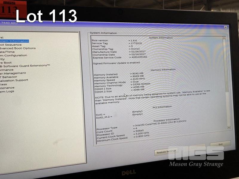 ALL-IN-ONE PC, DELL OPTIPLEX 7440, CORE i5 6500 (6TH GEN) @ 3.2GHz, 8GB DDR4 RAM, 256GB SSD, DVD-RW, INBUILT 23.8" FHD WIDESCREEN (1920x1080), INTEL HD VIDEO, WEBCAM, 8 x USB, WINDOWS 10 HOME INSTALLED, KEYBOARD & MOUSE S/N:1YT20J2