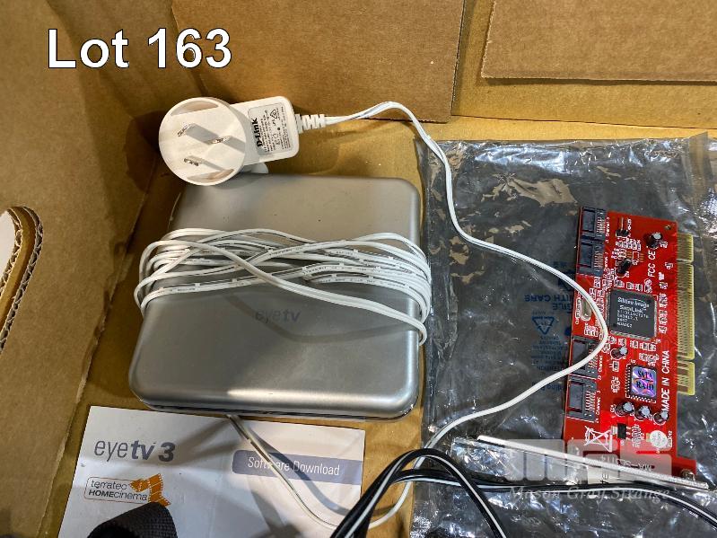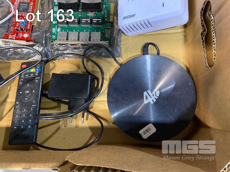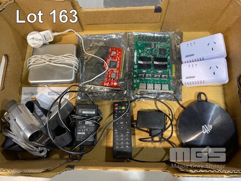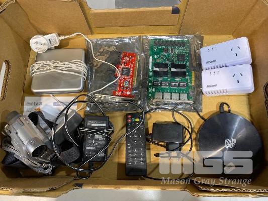 ANDROID TV BOX S82 WITH REMOTE & INTERNATIONAL POWER SUPPLY, NETCOMM POWERLINE ADAPTORS, ASST PCI CARDS, EYE TV NETSTREAM, SONY MINI DV DIGITAL VIDEO CAMERA