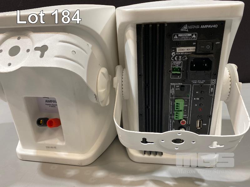AUSTRALIAN MONITOR AMPAV40 POWERED & PASSIVE SPEAKERS, 40W WITH BRACKETS & POWER CABLE ONLY
