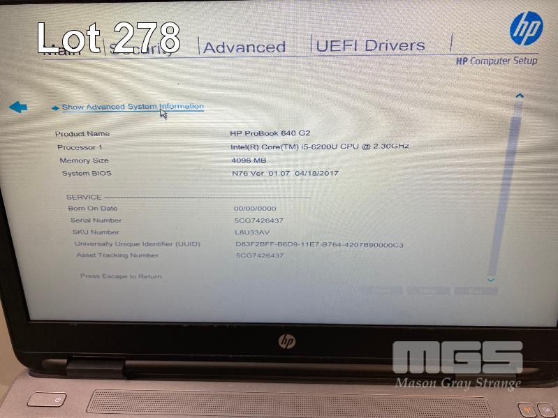 LAPTOP, HP PROBOOK 640 G2 (L8U33AV), CORE i5 6200U (6TH GEN) @ 2.3GHz, 4GB DDR3 RAM, 250GB SATA HDD, DVD-RW, 14" WIDESCREEN (1366x768), INTEL HD VIDEO, Wi-Fi, BLUETOOTH, WINDOWS 10 PRO INSTALLED & POWER SUPPLY (NOTE: MINOR DAMAGE TO CASING) S/N:5CG7426437