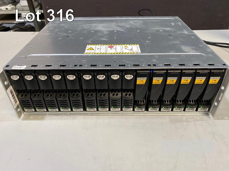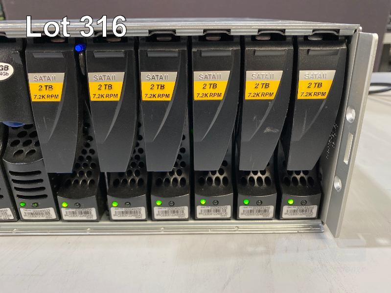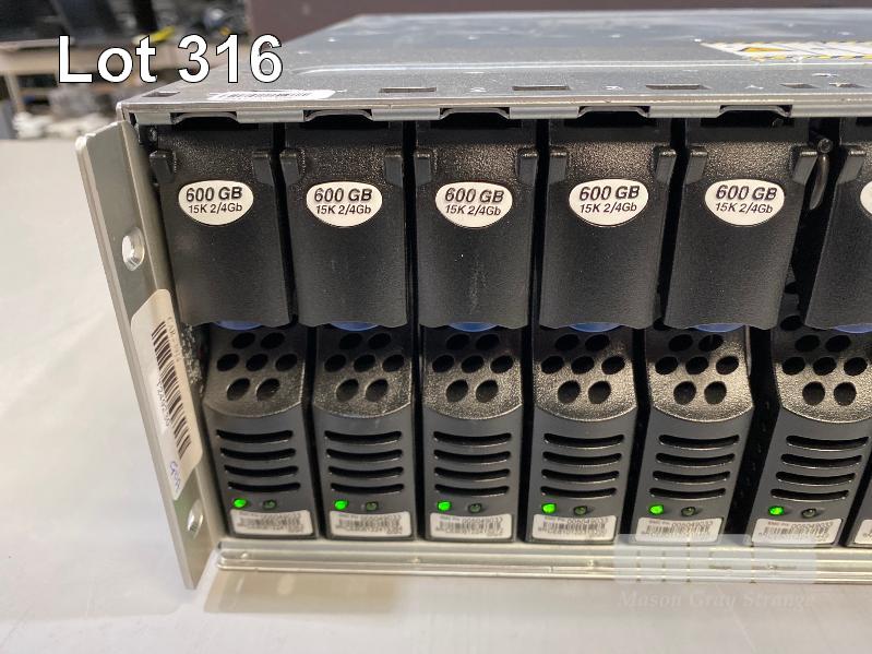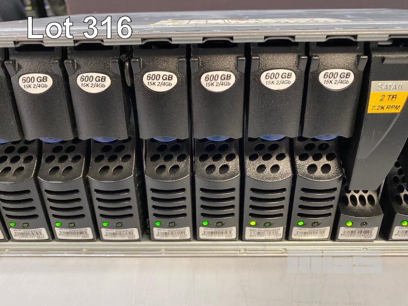 RACKMOUNT STORAGE ARRAY, DELL EMC2, MODEL KTN-STL4, 6 x 2TB SATA HDD, 9 x 600GB SAS HDD, 2 x FIBRE CHANNEL (303-127-000A), 2 x 400W PSU (NO CABLES)