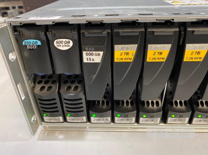 RACKMOUNT STORAGE ARRAY, DELL EMC2, MODEL KTN-STL4, 12 x 2TB SATA HDD, 2 x 600GB SAS HDD, 1 x 200GB SSD, 2 x FIBRE CHANNEL (303-127-000A), 2 x 400W PSU (NO CABLES)