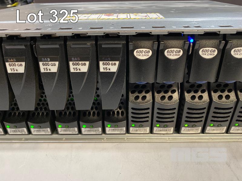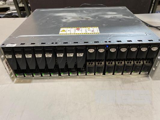 RACKMOUNT STORAGE ARRAY, DELL EMC2, MODEL KTN-STL4, 15 x 600GB SAS HDD, 2 x FIBRE CHANNEL (303-127-000A), 2 x 400W PSU (NO CABLES)