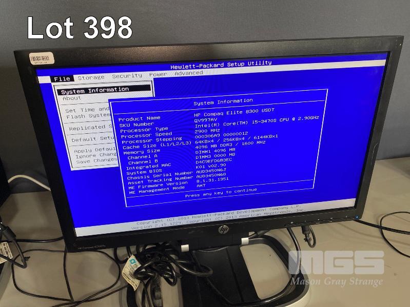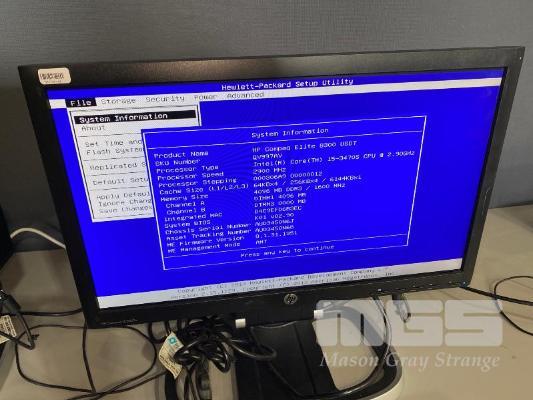DESKTOP PC, HP COMPAQ 8300 ELITE USDT, CORE i5 3470S (3RD GEN) @ 2.9GHz, 4GB DDR3 RAM, NO HDD, DVD-RW, KEYBOARD, MOUSE & POWER SUPPLY WITH HP COMPAQ LE2002x 20" LCD WIDESCREEN MONITOR ON INTEGRATED STAND (NOTE: SCRATCH ON SCREEN) S/N:AUD3450N6J
