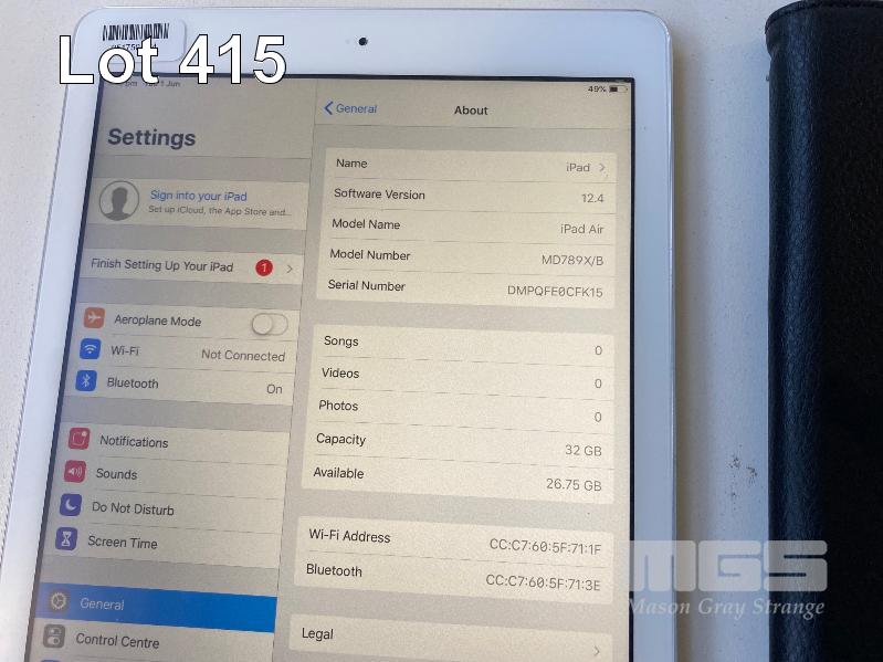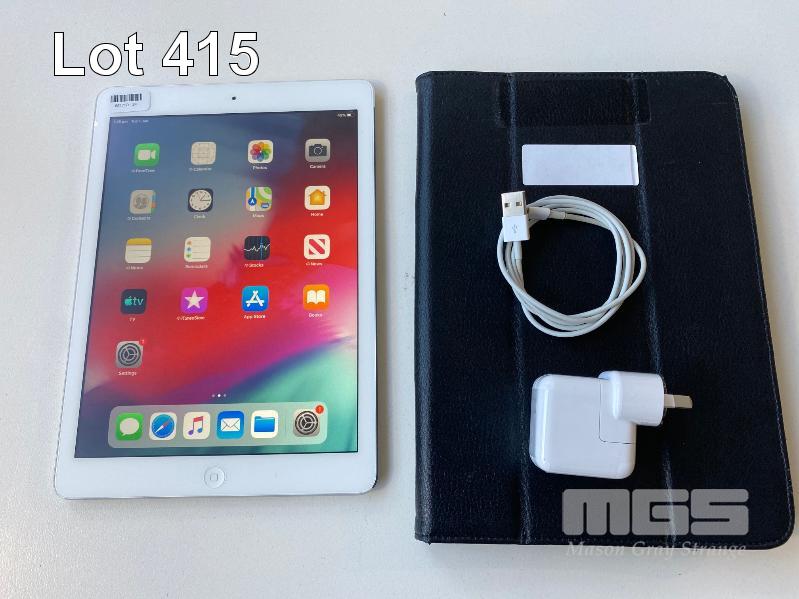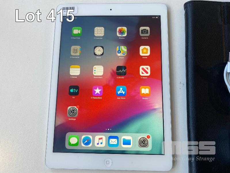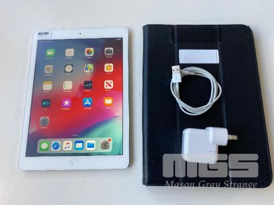 APPLE iPAD AIR, 32GB, Wi-Fi, SILVER, MODEL A1474 WITH CABLE, CHARGER & COVER S/N:DMPQFE0CFK15