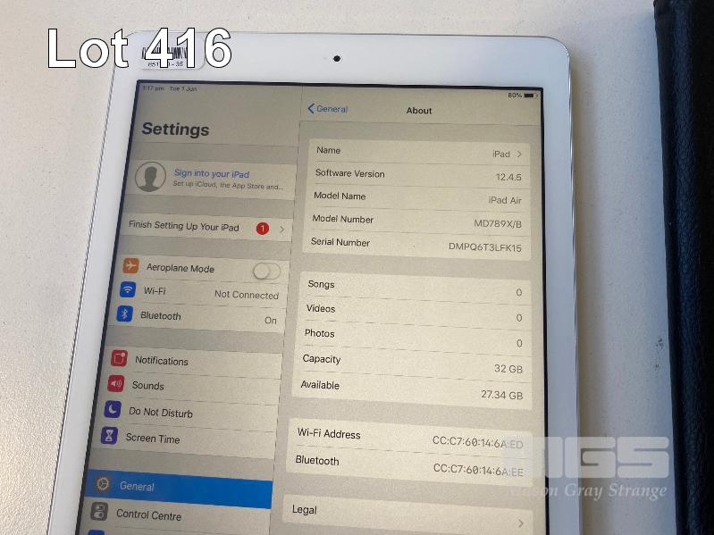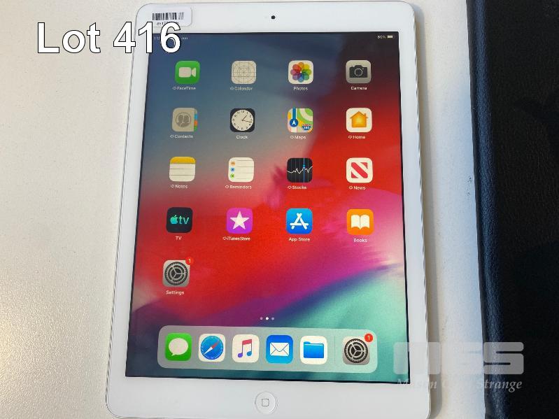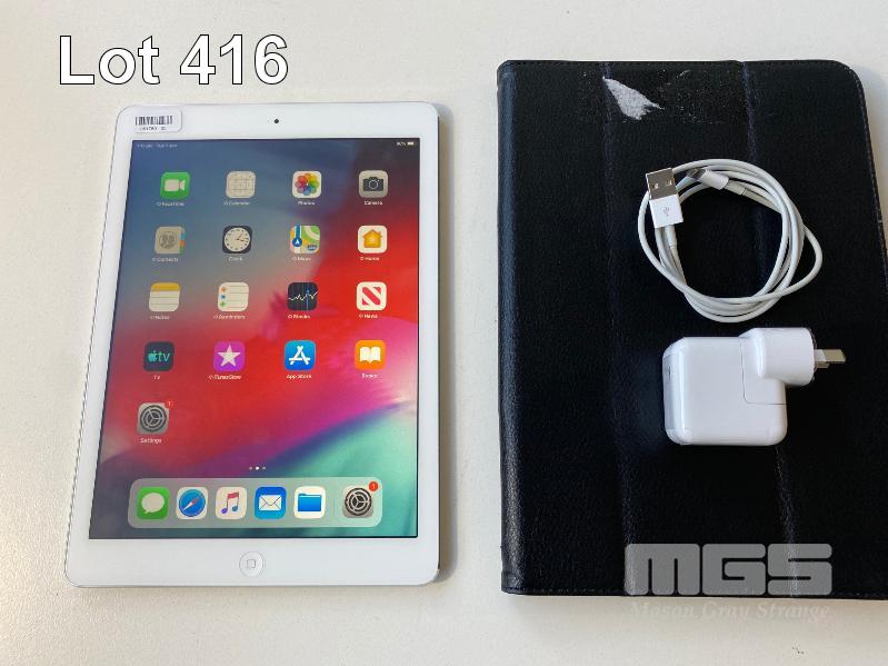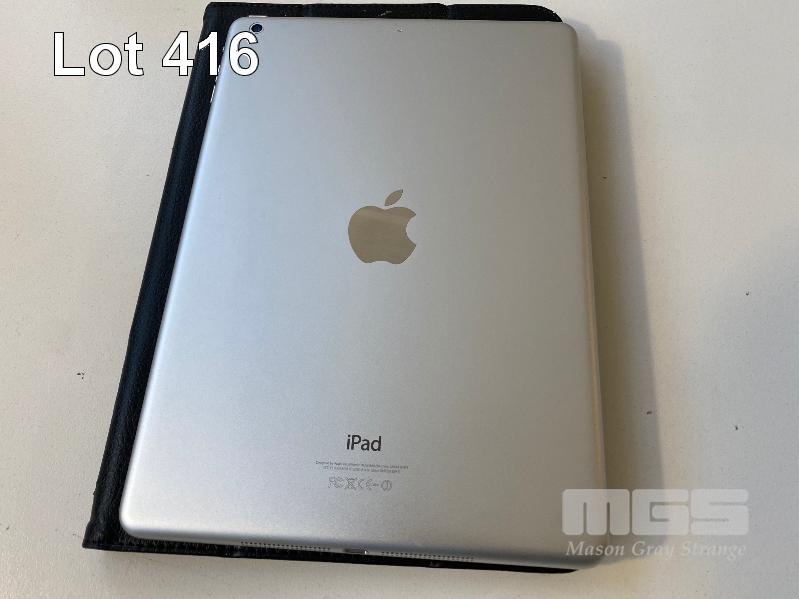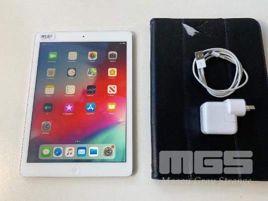 APPLE iPAD AIR, 32GB, Wi-Fi, SILVER, MODEL A1474 WITH CABLE, CHARGER & COVER S/N:DMPQ6T3LFK15