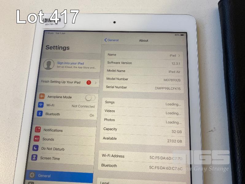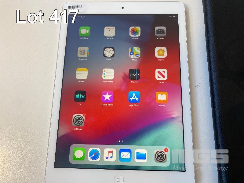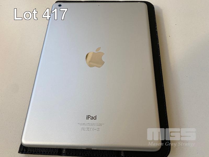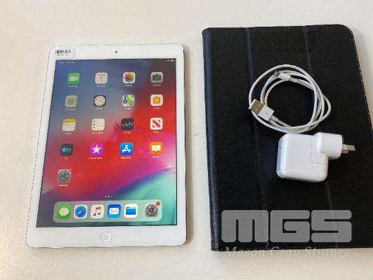 APPLE iPAD AIR, 32GB, Wi-Fi, SILVER, MODEL A1474 WITH CABLE, CHARGER & COVER S/N:DMPP90LCFK15