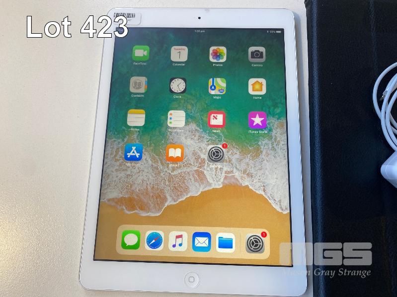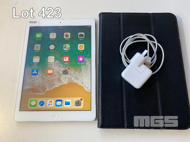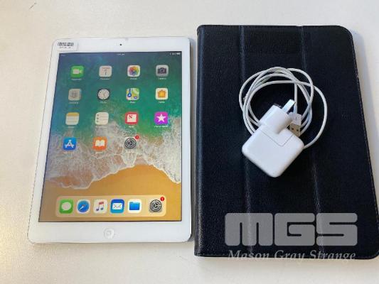 APPLE iPAD AIR, 32GB, Wi-Fi, SILVER, MODEL A1474 WITH CABLE, CHARGER & COVER