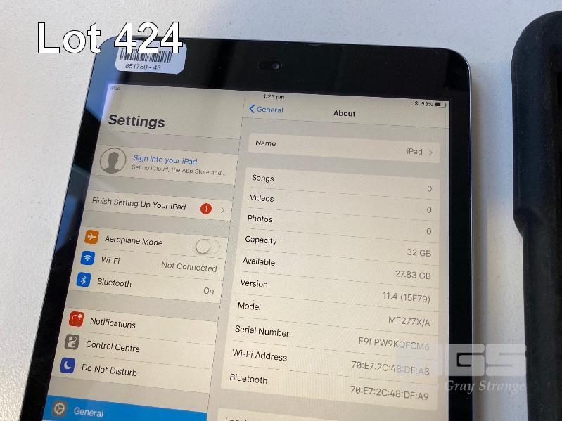 APPLE iPAD MINI 2, 32GB, Wi-Fi, SPACE GREY, MODEL A1489 WITH CABLE, CHARGER & KENSINGTON RUGGED CASE S/N:F9FPW9KQFCM6