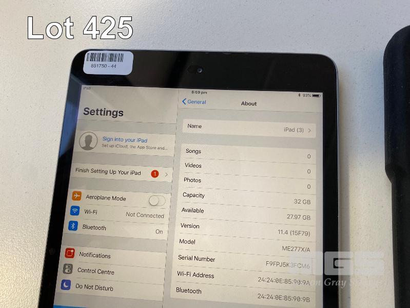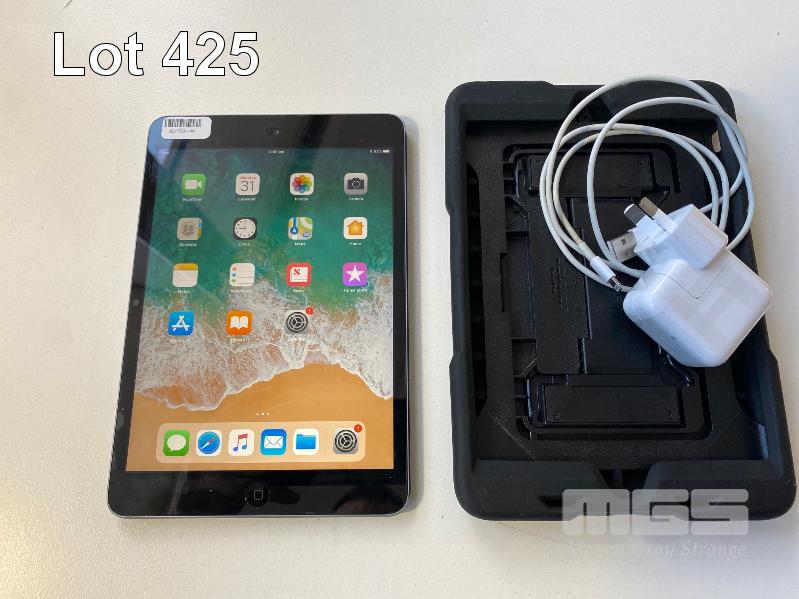 APPLE iPAD MINI 2, 32GB, Wi-Fi, SPACE GREY, MODEL A1489 WITH CABLE, CHARGER & KENSINGTON RUGGED CASE S/N:F9FPJ5K3FCM6
