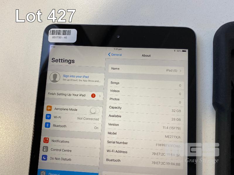 APPLE iPAD MINI 2, 32GB, Wi-Fi, SPACE GREY, MODEL A1489 WITH CABLE, CHARGER & KENSINGTON RUGGED CASE S/N:F9FPRFX1FCM6