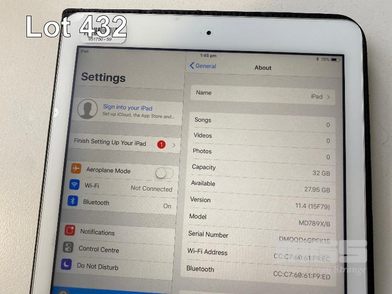 APPLE iPAD AIR, 32GB, Wi-Fi, SILVER, MODEL A1474 WITH COVER (NO CHARGER, NO CABLE) S/N:DMQQD6GPFK15
