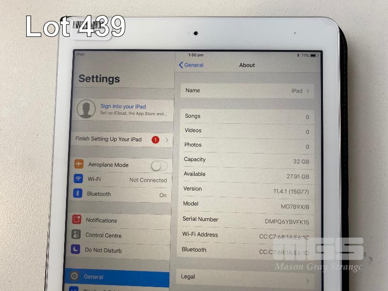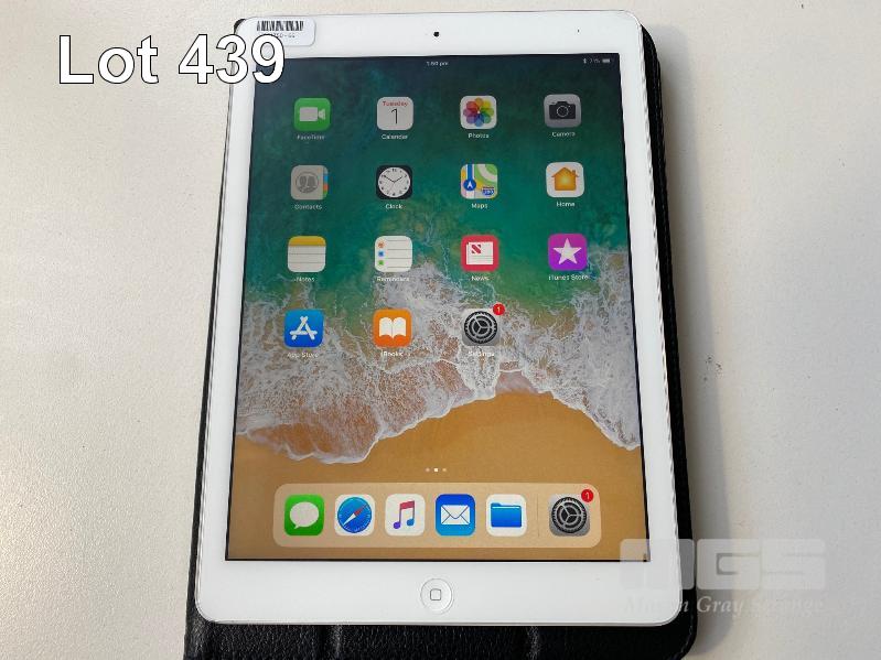 APPLE iPAD AIR, 32GB, Wi-Fi, SILVER, MODEL A1474 WITH COVER (NO CHARGER, NO CABLE) S/N:DMPQ6YBVFK15