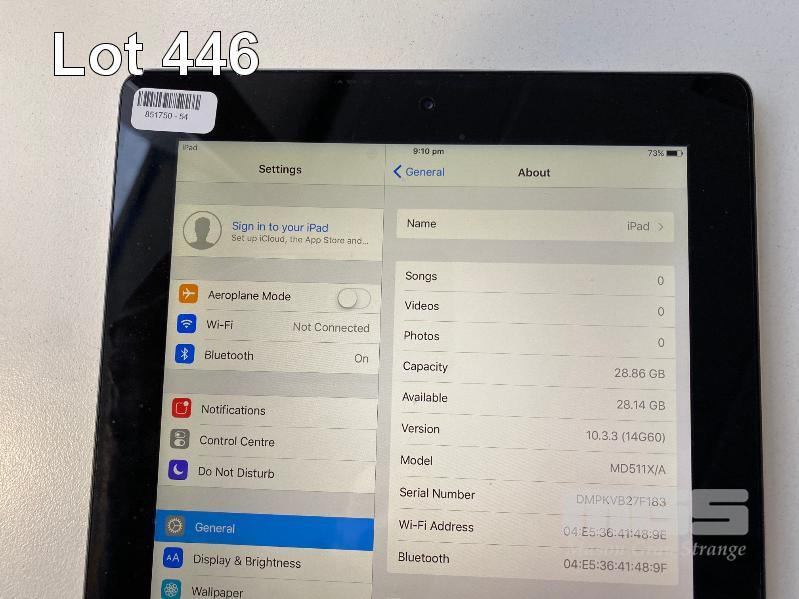 APPLE iPAD 4TH GEN, 32GB, Wi-Fi, SPACE GREY, MODEL A1458 (NO CHARGER, NO CABLE) S/N:DMPKVB27F183