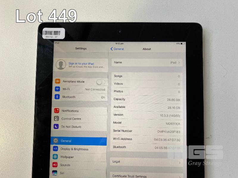 APPLE iPAD 4TH GEN, 32GB, Wi-Fi, SPACE GREY, MODEL A1458 (NO CHARGER, NO CABLE) S/N:DMPKVA2SF183
