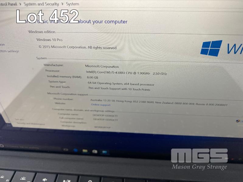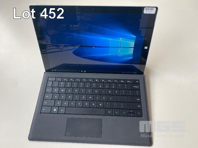 TABLET PC, MICROSOFT SURFACE PRO 3, MODEL 1631, CORE i5 4300U (4TH GEN) @ 1.9GHz, 8GB RAM, 256GB SSD, 12" TOUCHSCREEN, Wi-Fi, WINDOWS 10 PRO INSTALLED, KEYBOARD TYPE COVER & POWER SUPPLY S/N:015711645053