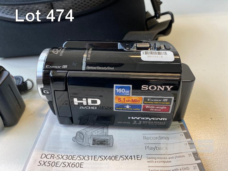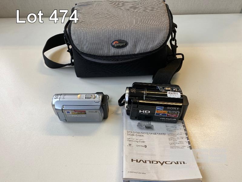 SONY HANDYCAM HDR-XR160E VIDEO CAMERA (NO CHARGER), SONY HANDYCAM DCR-SX60E VIDEO CAMERA (LCD DISPLAY FAULT) (NO CHARGER) WITH 1 x CAMERA BAG