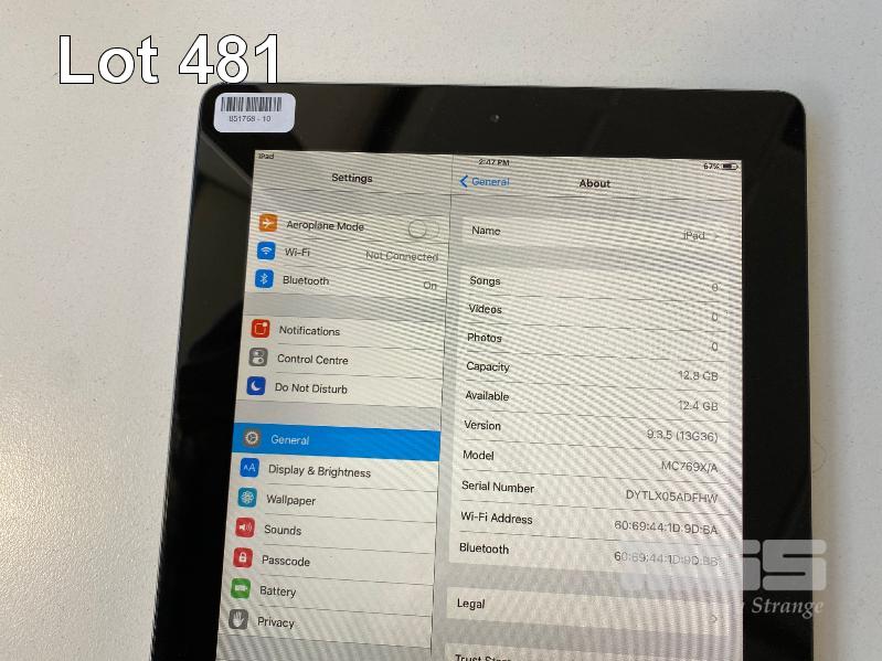 APPLE iPAD 2, 16GB, Wi-Fi, SPACE GREY, MODEL A1395 (NO CHARGER, NO CABLE) (NOTE: ENGRAVING ON BACK) S/N:DYTLX05ADFHW